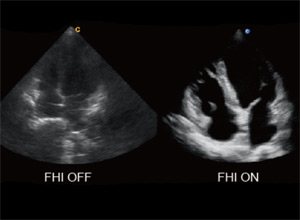 Тканевая гармоника с фазовым сдвигом существенно улучшает качество визуализации в В-режиме.